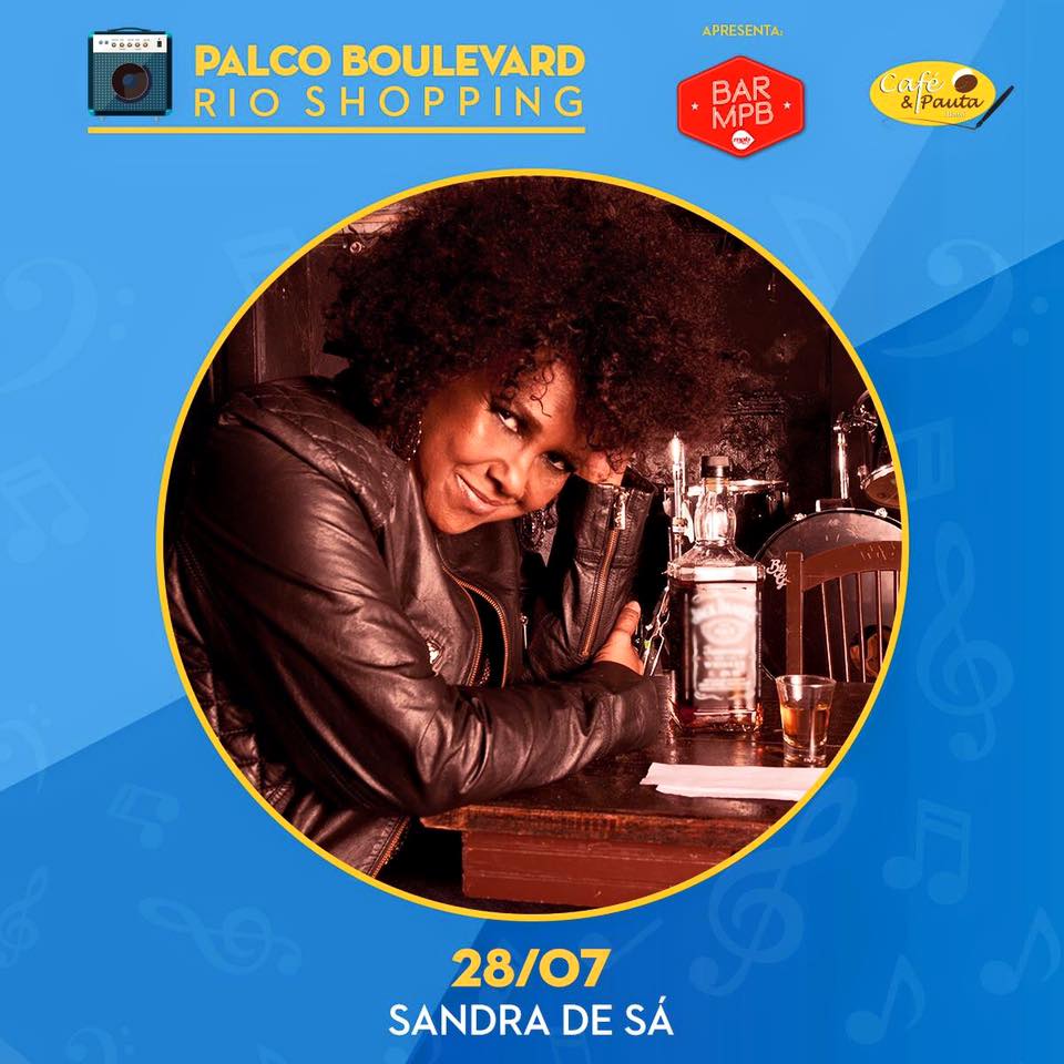 Anote na agenda: dia 28/07 é dia de curtir um happy hour com os amigos ao som da incrível cantora Sandra de Sá no #PalcoBoulevardRio! O evento acontece a partir das 19h30, na Praça de Alimentação (3º Piso).